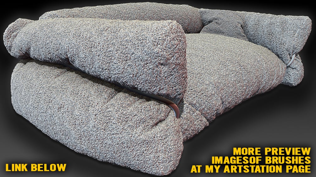 You can use these brushes and alpha/height maps for sculpting any sort of fabric for your character, furniture, interior, props, etc. for a videogame or for your art.