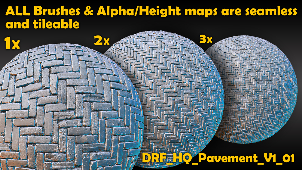 Ultra HQ Paving / Pavement Seamless Sculpt Zbrush brushes + Alphas (Blender, Substance, etc.) Vol.1