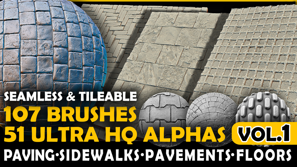 107 Ultra HQ Paving / Pavement Seamless Sculpt Zbrush brushes + 51 Alphas (Blender, Substance, etc.) Vol.1