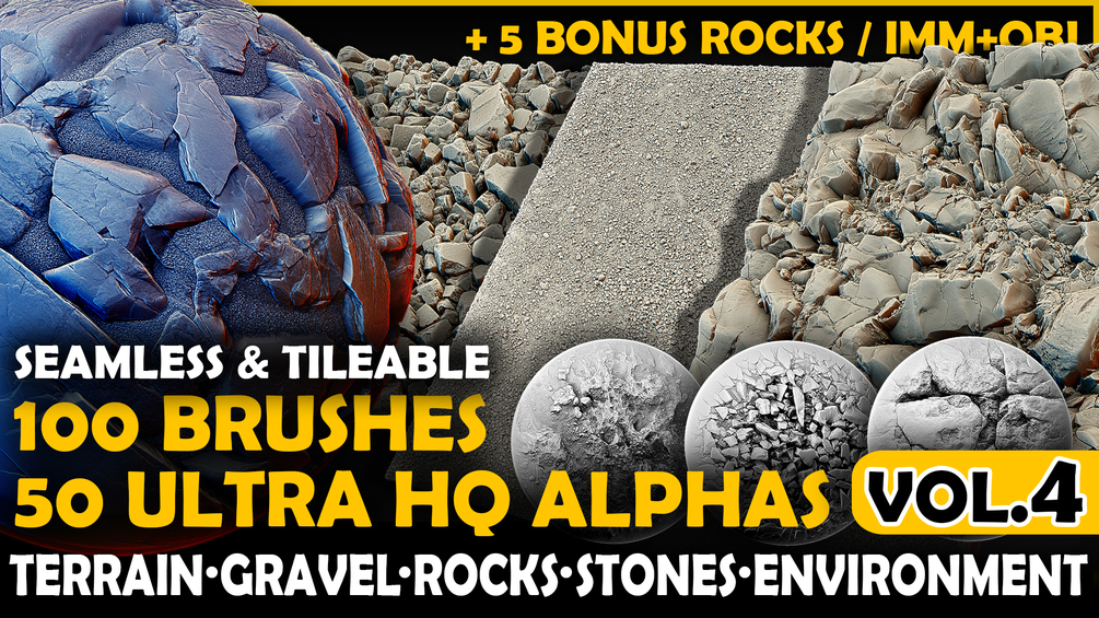 100 Ultra HQ Terrain / Rock Sculpt Zbrush brushes + 50 Alphas (Blender, Substance, Mudbox, etc.) Vol.4